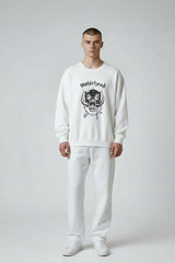 This Motörhead crewneck carries a raw, vintage rock attitude wrapped in everyday comfort. The bold black graphic on a clean base delivers that worn-in tour-shirt vibe — iconic, rebellious, timeless. It sits like a reliable layer: roomy through the body, ribbed at the collar and cuffs to hold its shape, and soft against the skin thanks to a midweight cotton–poly blend.